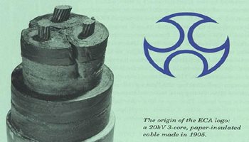A new house style and symbol are adopted by the ECA: the device based upon a representation of three-core cable.